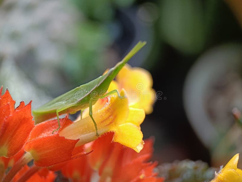 μωρό πράσινοι ακρίδες προσγειώνονται σε λουλούδια στοκ εικόνα με δικαίωμα ελεύθερης χρήσης μωρό πράσινοι ακρίδες προσγειώνονται σε λουλούδια